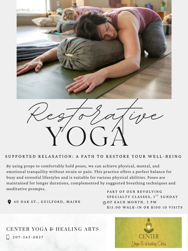 Offered as a Specialty Class in a revolving schedule with other formats, 1st Saturday of each month, 9 AM, at Center Yoga. Also available for groups at your site. 343-0827