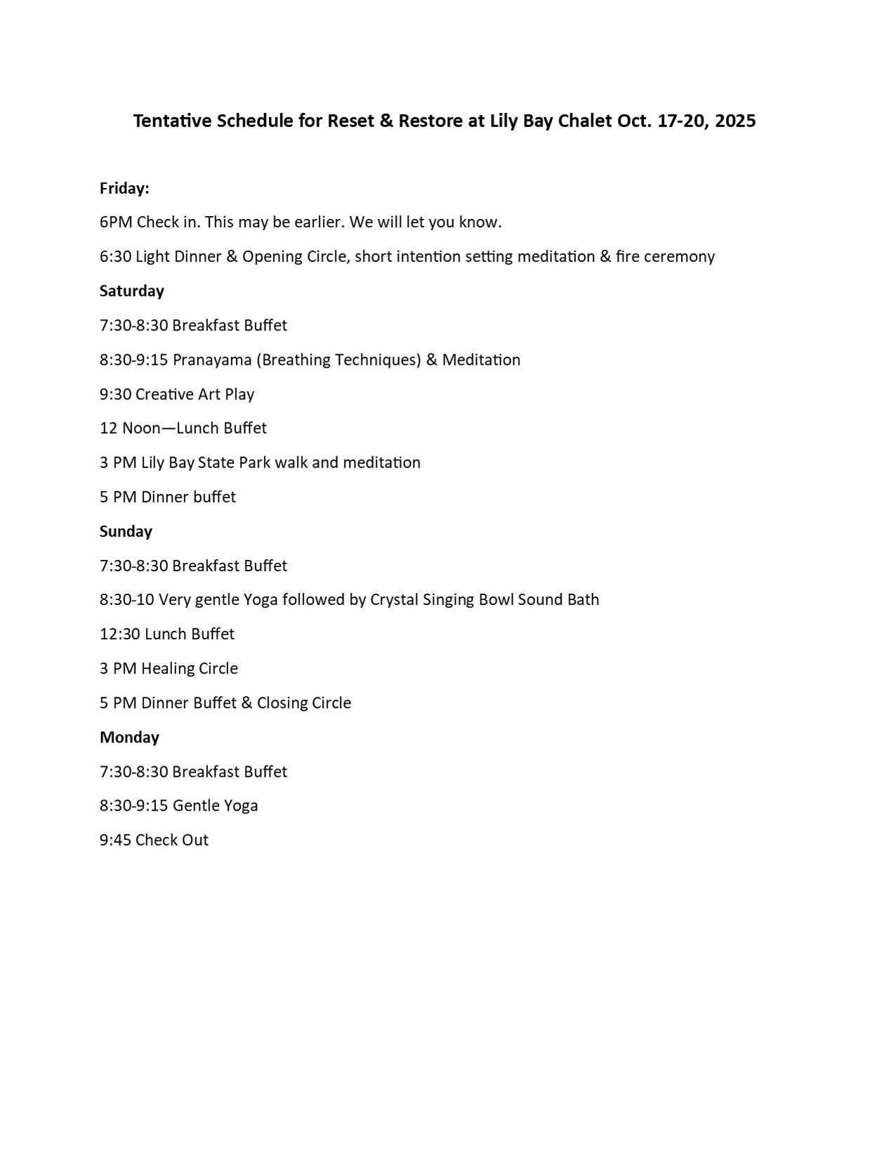 For more information about our providers and their offerings at Lily Bay, please click on the Meet the Staff link under Lily Bay. Schedule subject to change due to weather or illness.